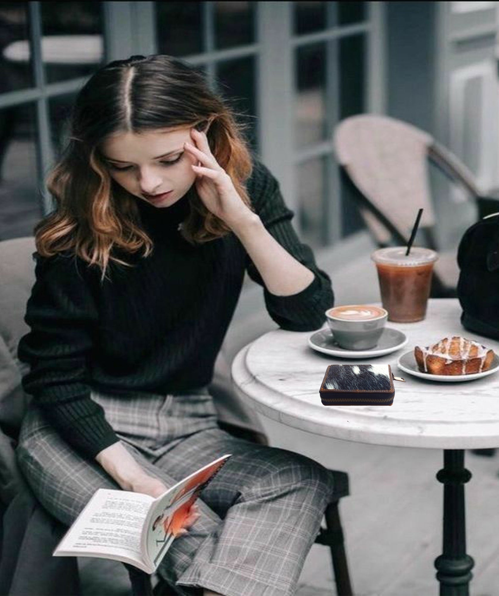 Cowhide Hair-On Leather with Brown leather trim adds a touch of elegance to the overall design, while the white and black color combinations create a striking contrast that is modern and versatile.